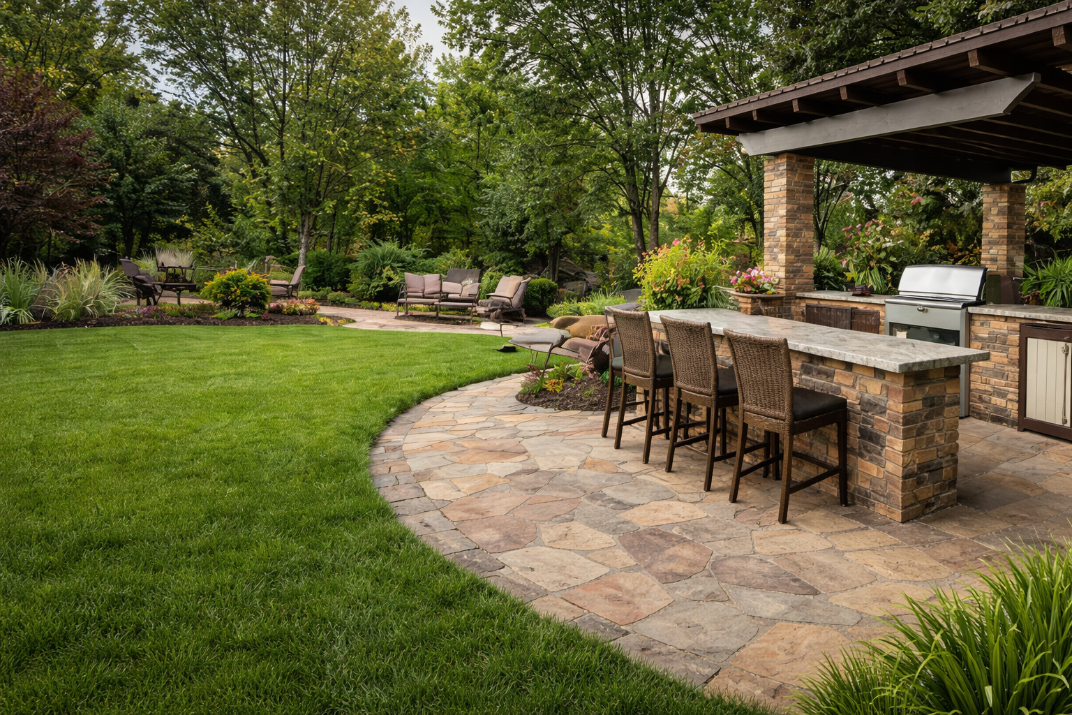 Custom paver and stone patio installations that extend your living space outdoors.